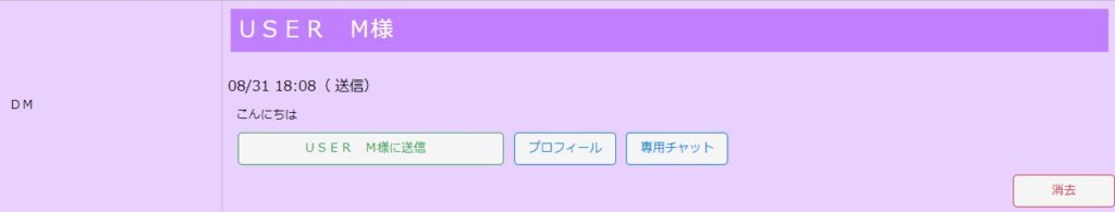 DM送信/受信 2024.05.292024.08.31 DM送信/受信 迷ったらまず登録! 無料だから気軽に試せる! 成人女性 成人男性 迷ったらまず登録! 無料だから気軽に試せる! 成人女性 成人男性 メッセージ受信 ・女性ユーザーからのメッセージは全て無料でご覧いただけます。 メッセージ送信 ・男性ユーザーは、全ての女性ユーザーに一度だけ無料でDMを送信できます。 プロフィールから送信 フレンド検索からコンタクトを取りたいフレンドのサムネイルをクリック。プロフィールが開く。 3.DM送信をクリック。 DM送信ボタンが黒色に反転している場合は送信は出来ません。 マイページから送信(2回目以降)/返信 1.マイページDM表示欄の対象フレンド最終行の〇〇様に送信をクリック。以下の場合DM送信はご利用いただけません。送信者の利用期間が終了している。受信者側のDM送信が利用不可に設定されている。 送信ダイアログが開く。 コメントを入力し送信ボタンをクリック。 ※画像を送信したい時は、コメント入力後にアップロード選択ボタンを押し送信したい画像を選択して送信(アップロード)をクリック。 アップロード選択で各種ファイルをアップロードできます。 メッセージ履歴/削除 クリックして送信者を選択する事ができます。受信されたDMはマイページに表示されます。履歴マイページをリロード。削除コンタクト履歴/削除をクリックし対象フレンドを選択。マイページDM表示欄の最終行の削除をクリック。※返信はチケット購入後に対応可能です。 DMの返信が無い場合 返事が無いという事で相手に固執するとストーキングとみなされる場合が有りますので自制して行動してください。「ストーキング」とは、他人のプライバシーを侵害したり、彼らを脅かしたりするような行為を指します。これは、人々に対する監視、追跡、脅迫、威圧、嫌がらせ、または他の不快な行為を含みます。このような行為は法的に問題とされており、通常は性的なハラスメント、暴力、脅迫、隠密行為、嫌がらせなどと呼ばれます。ストーキングは、対象となる人に対して不安や恐怖を引き起こすことがあります。さらに、ストーキングは、対象の人の健康や幸福を著しく損なうこともあります。このような行為は違法であり、被害者は警察や当局に通報することができます。